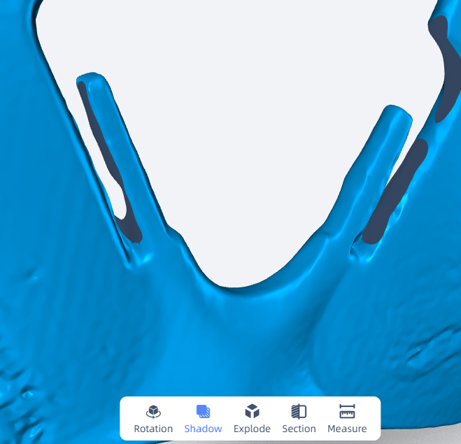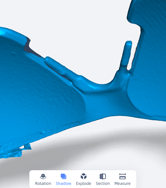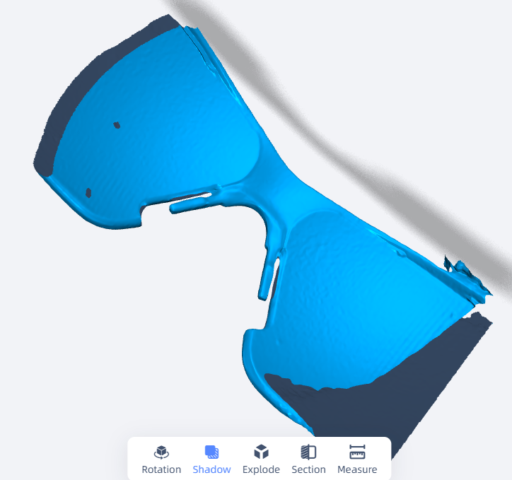 スキャナからクラウドにデータを送ってPCのブラウザから見た眼鏡形状がこちらです。鼻あて部分は結構小さいですが、引っかかる部分も含めかなりきれいにスキャンできているのがお判りいただけると思います。VEGAはエラーデータを積極的に捨てる結果、寸法安定性もよくて私の用途には非常に向いていて満足度が高いです。
