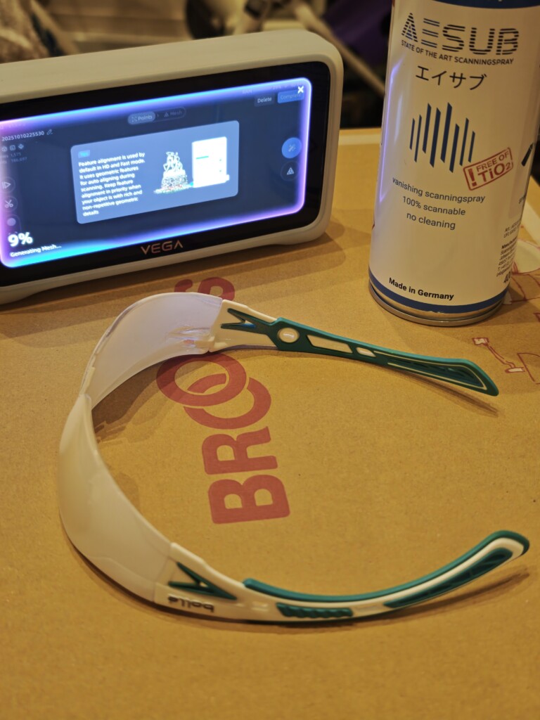 当然透明部分が多いのでそのままではスキャンできません。今回のゴーグルはゴーグル本体の中央にノーズピース用の差込部分がついており、そこに差し込む形状となっています。つまり完全な透明なので、実用に足るスキャンを行うためには何らかの前処置が必要です。唯一透明なものをスキャンするとしたら、以前ご紹介したKIRI Engineが非常に優れていると思います。AIを使用したカメラ画像からのメッシュ、もちろん限界はありますがコレはこれで魅力的ですよね・・・