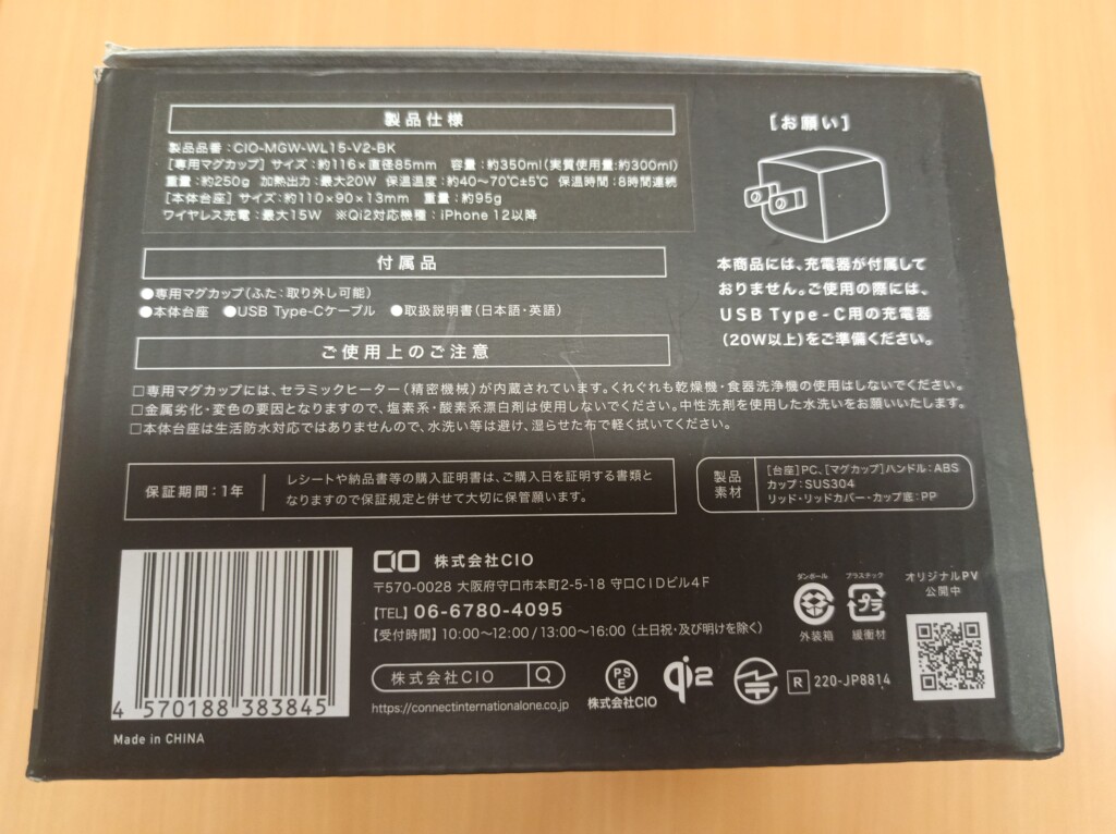 CIOは元々充電器やバッテリーなどのガジェットを発売されている企画販売を日本で行っている企業です。前述の充電器やバッテリーも特徴がそれぞれあり気に入って使っています。ということで今回のガジェット、「Magwarmer2」は、スマートフォンなどのQi2ワイヤレス充電に対応した充電器とマグカップウォーマーを2個イチにした製品です。・・・よく思いつきましたよね、これ。