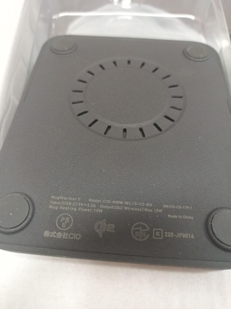 カップって意外とすぐ冷めてしまいますし、レンジまで行くのも面倒だし・・・とまあ、そんな難しく考えていたわけではないのですが、たまたまみかけたんですよ、これ。CIOの無線充電機能付きマグウォーマー。発売記念でちょっと安かったので購入してしまいました。あまりqi2充電の機器持っていないんですけれどね!!