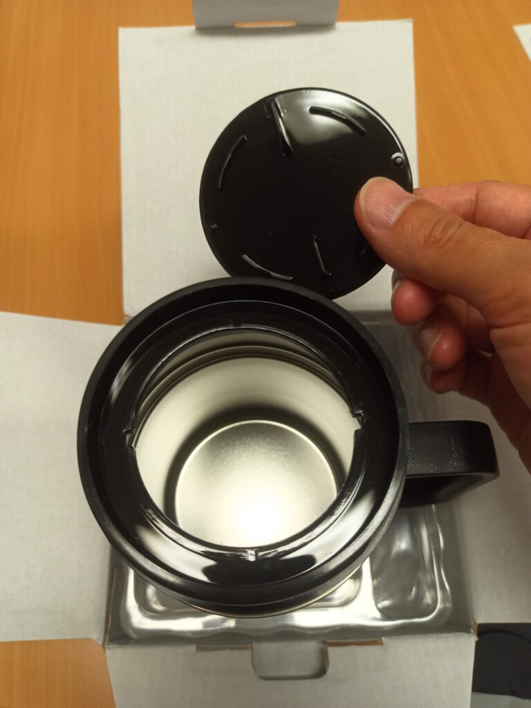 マグカップは比較的大きくしっかりどっしりした感じ。とはいえ取っ手も大きく中身が入っていても重さは意外と気になりません。全体的にマットな質感で好みです。蓋はプラスチック製でゴムパッキン付きですが、実は使ったことがないです(笑)2つに分かれて洗えるようになっているのと、ふた状になっているものの隙間があってそこから飲み物が出てくる感じで埃避けを兼ねています。