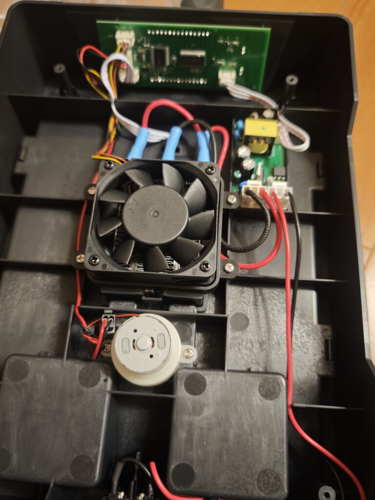 フィラメントを引き出す際には逆に抵抗になるのですが実際使っていてあまり気にはなりませんでした。フィラメント全体でむらなく加熱、乾燥が出来る点は興味深いと思います。ちなみに気になって中をあけてみましたがこんな感じでパーツ点数は少なかったです。部品交換はしやすそう。