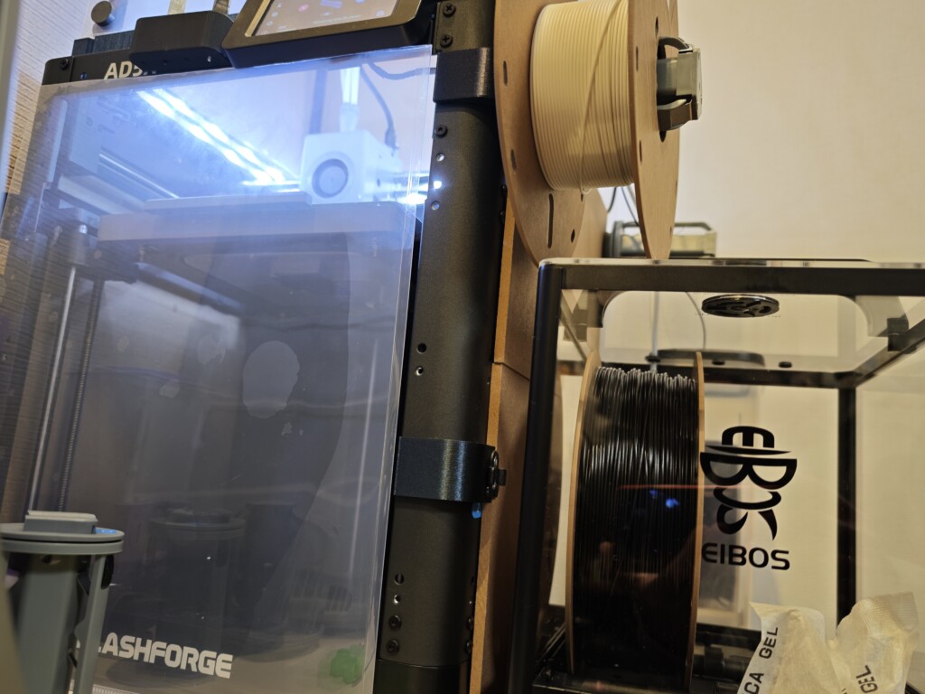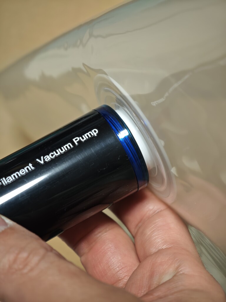 真空ポンプ接続部分はちょうどスプール穴部分になっていて吸引によって密着します。私は気にならなかったのですが、ポンプ接続部分が出っ張ることによって平置き時の障害になったり、またもともとのフィラメント箱に入らないといった声をXで耳にしました。