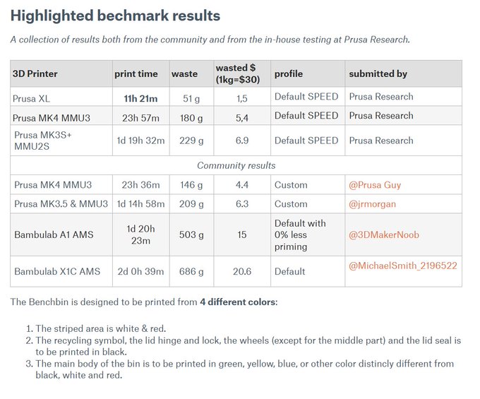 最近PRUSA(Printables)から登場した、マルチカラー用ベンチマーク、Benchbinも印刷しましたが、この通り何の問題もなく完成しました。印刷時間は11時間20分くらい、ゴミは約40gでした。シングルノズルに比べると速さと無駄のなさがスゴイです。まあ、本来はバラで印刷して組み立てるのが筋だとは思います。あくまでベンチマークですね。なおPrintablesを見ると最近はさらに最適化され、9.5時間程度で印刷できる?みたいです。