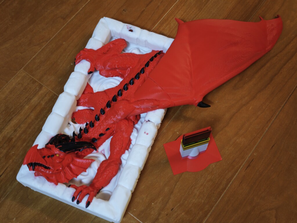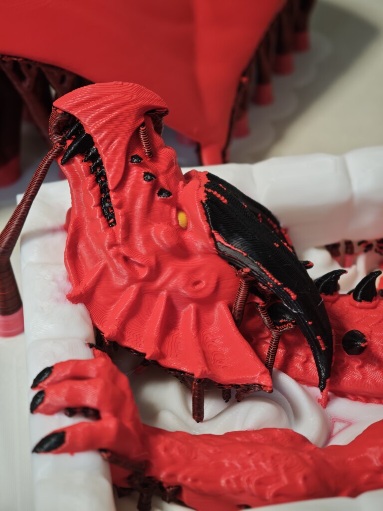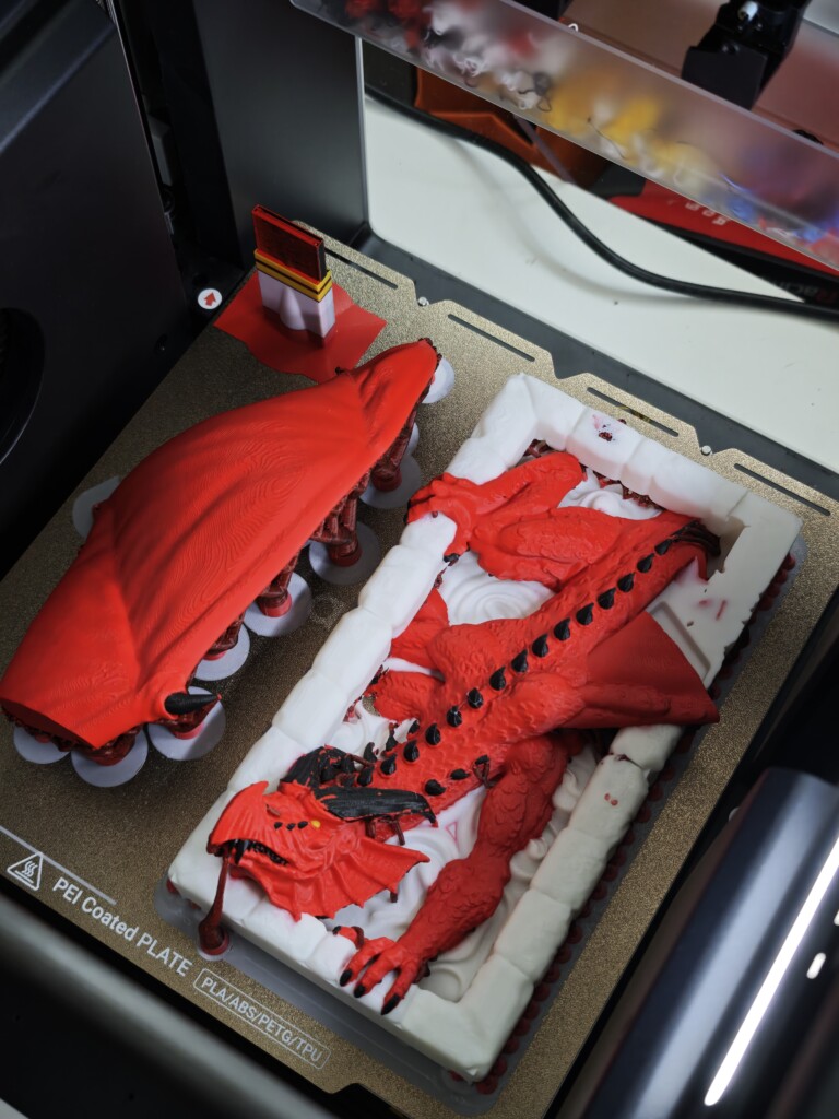 こちらは大作、Cross lanceさんから購入したドラゴンのモデルですがこれも同じフィラメントを使用しています。一部枠に色が入っていますが、これは裏が埋まっていなくてサポートが入り込んだものが見えているのと、後は私の塗り忘れです。ドラゴンの顔部分も滅茶苦茶キレイです。