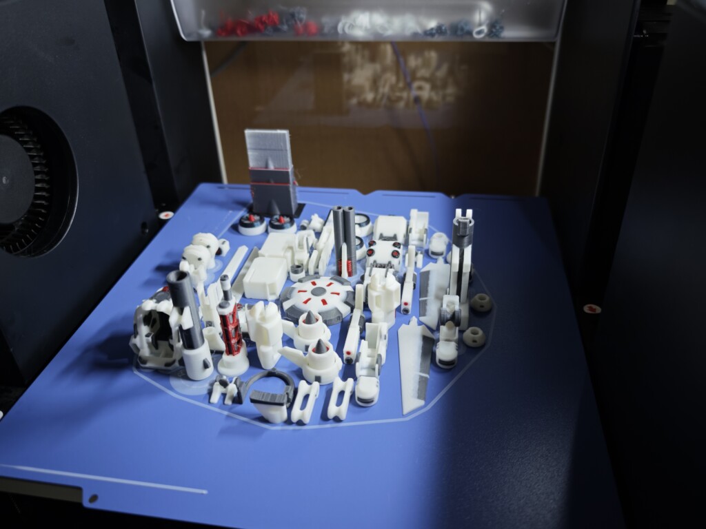 あと音が大きめなのも欠点です。ツールの脱着はガチャっと大き目かつメカな音がします。頻繁に色変えをすると結構ガチャガチャする感じです。ツールを戻す時にしっかりと磁石で本体にくっつくのですがその音が大きいんですよね。夜間だとかなり気になると思います。また、エンクロージャーがない今は駆動音や補助パーツファンなども含めそれなりに騒々しいです。そもそもCoreXY機は基本あまり静かではないので個人的には静かなプリンターはA1mini一択かなと思っています。
