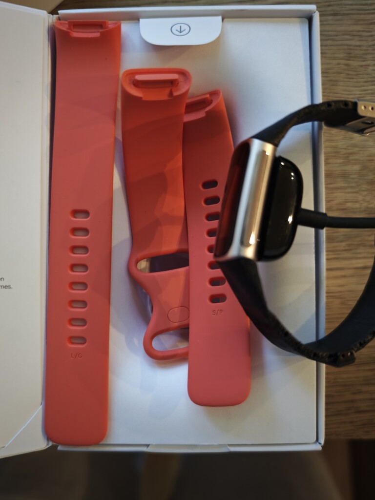 ということで上が届いたFitbit Charge 6です。スマートバンドとしては個人的には好きなデザインです。シンプルでサイズ感も含め、本当にwenaにするのにぴったりです。ボタンは感圧式?のものが側面に一つで他はタッチパネルのみですがwenaとは似ていてトラッカーとしての性能は満たされています。製造年が2023年なのがちょっと気になりましたが・・・。Googleストアから買ったんですけれどね。